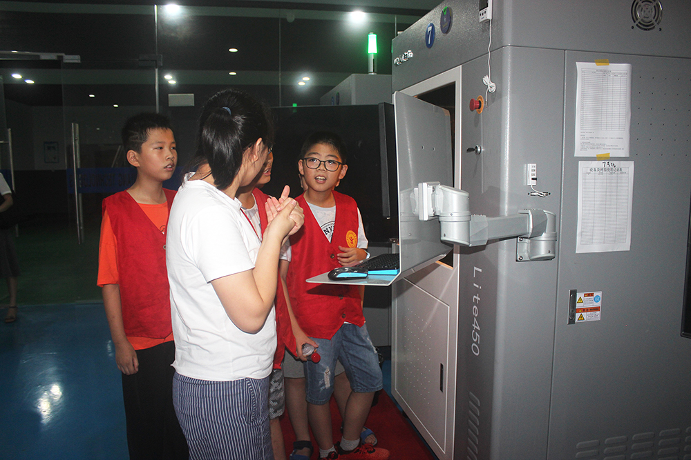 接著,在浙創科技工作人員以及家長的帶領下,同學們又分批來到3D打印車間。工作中的3D打印機引起了在場同學的好奇,工作人員向同學們生動簡單的介紹了3D打印的流程,在說道:“只要把模型文件輸入進去打印機,什么復雜的東西都可以打印出來的”時候,同學們發出了陣陣驚嘆。