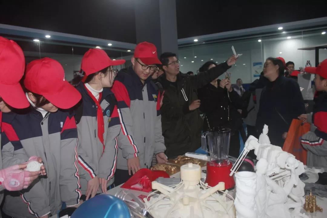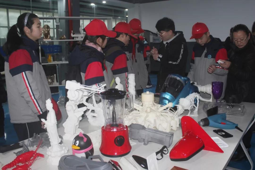 在3D打印樣品間,同學們看到了由不同材料打印成型的各個領域的產品。琳瑯滿目的樣品再次激起了同學們對3D打印的好奇心,也使同學們加深了對3D打印技術應用的認識。同學們仔細觀察結構復雜的模型,聽取3D打印在大家日常生活學習中的應用,感嘆3D打印的神奇。
