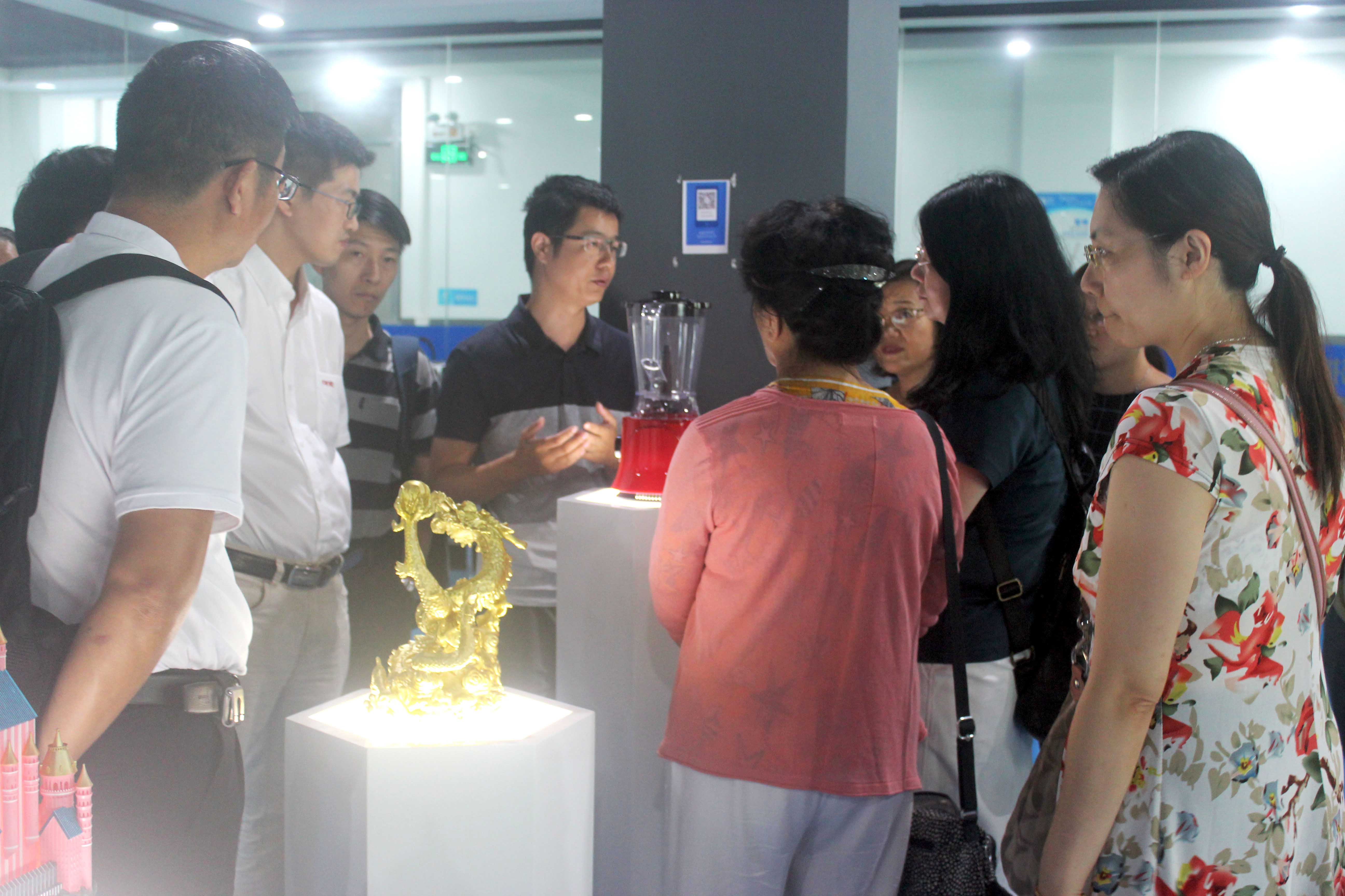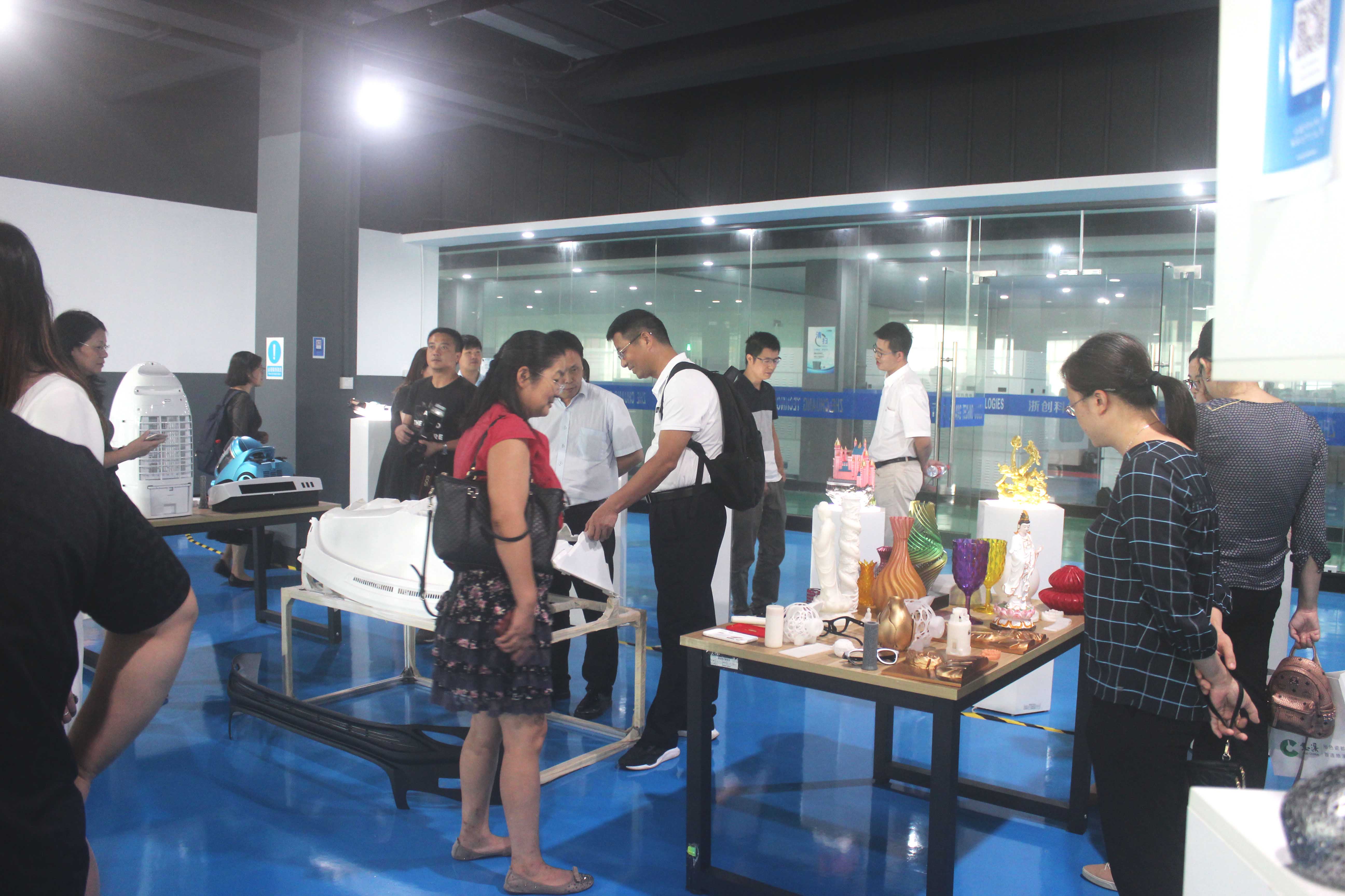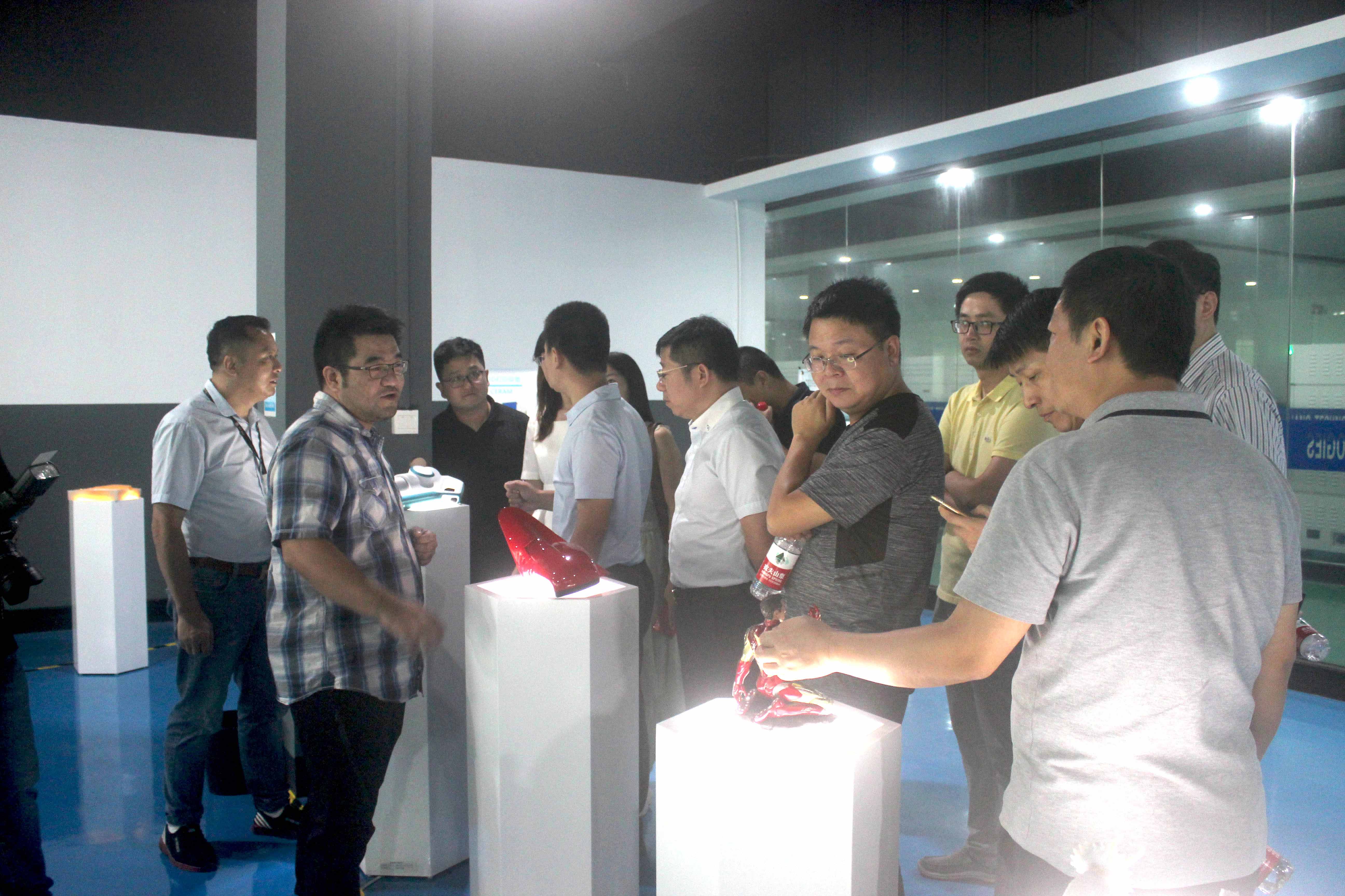 3D打印樣品間,陶總、魏副總、陶副總向來訪嘉賓展示了3D打印的各種模型,來訪嘉賓對優質的家電、汽車配件、建筑模型、玩具手辦表現出了濃厚的興趣,并就模型生成的整個過程向浙創科技領導進行了詳細的詢問。
