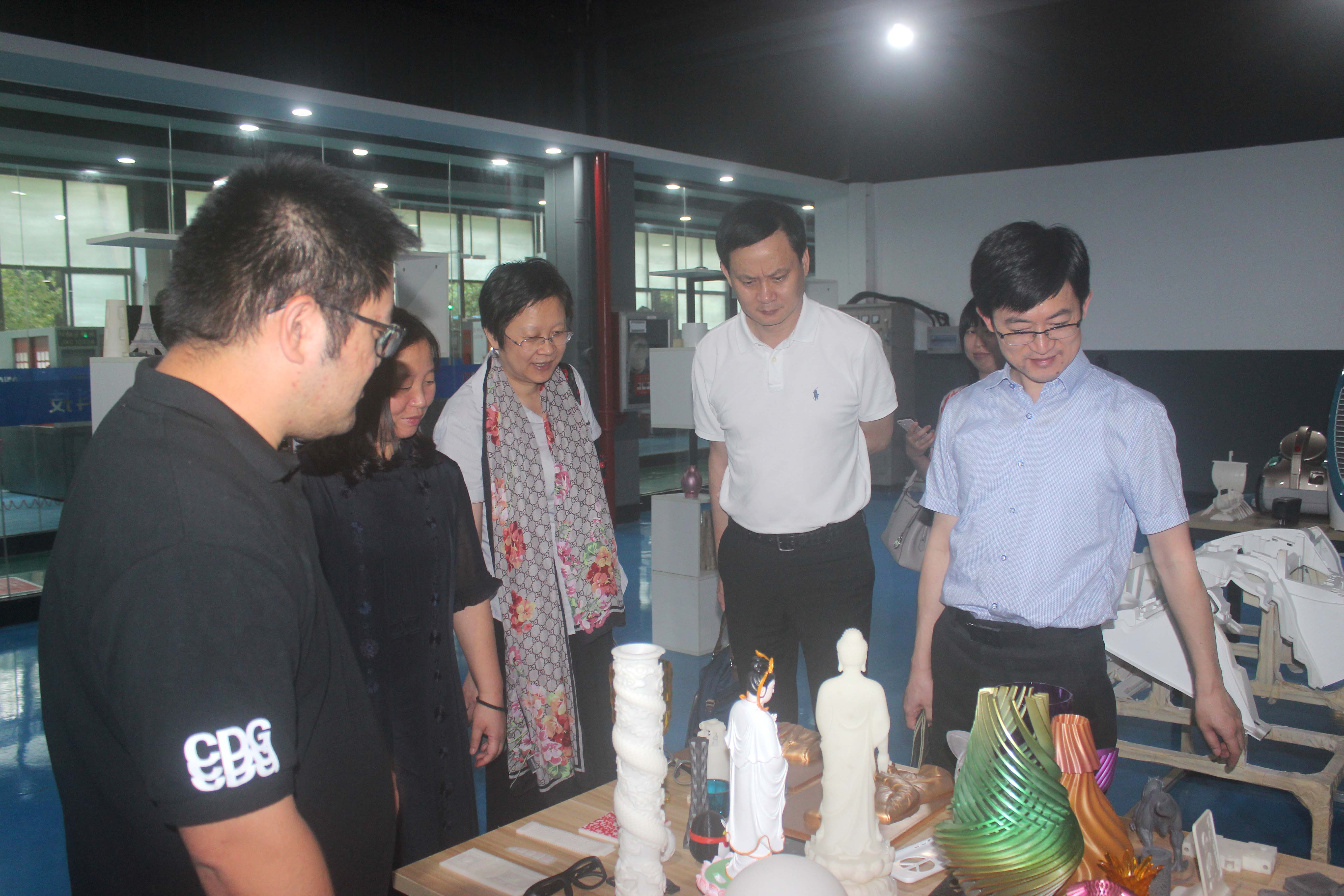 在3D打印樣品間,向大家展示了3D打印在各個(gè)領(lǐng)域的相關(guān)產(chǎn)品,陶總表示3D打印技術(shù)大大縮減了勞動(dòng)力成本,提高了制造效率,突破了傳統(tǒng)制造的限制,為以后的創(chuàng)新提供了平臺(tái)。面對各式各樣的樣品,樓雪聰一行就3D打印技術(shù)談了自己的看法和體會(huì)。